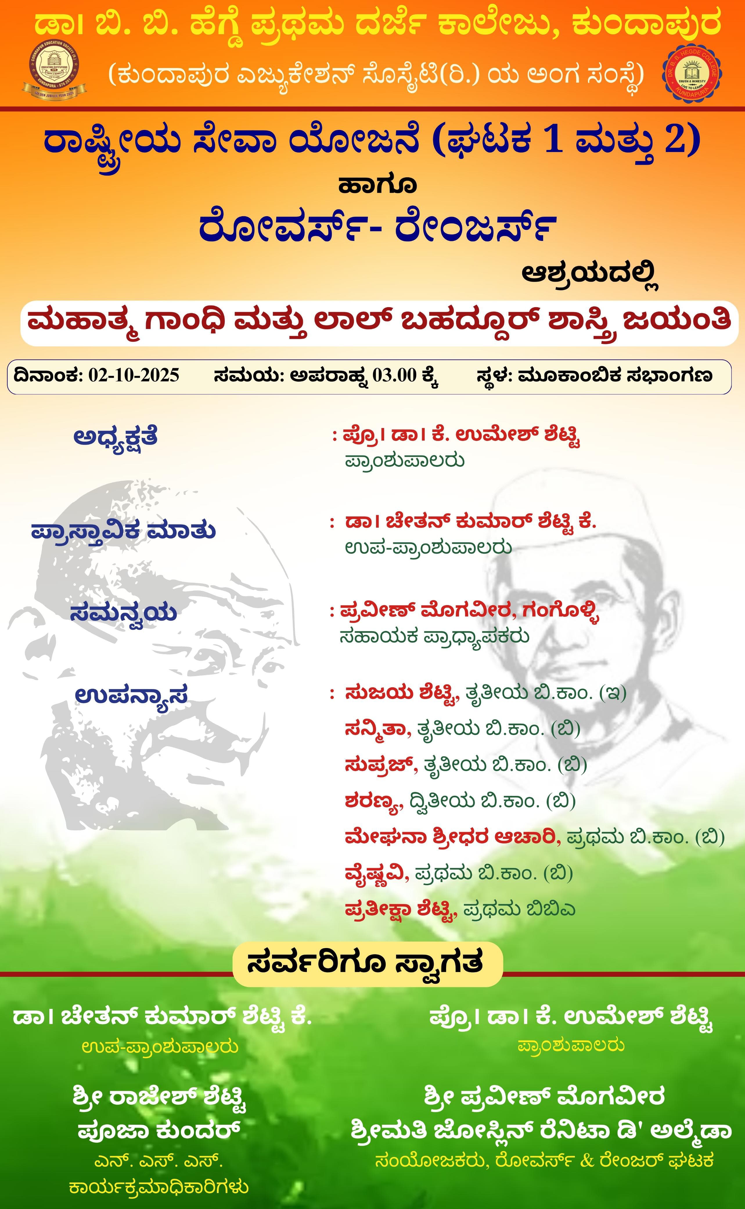 Gandhi Jayanthi and Lalbahaddur Shashtri Jayanthi Celebrations