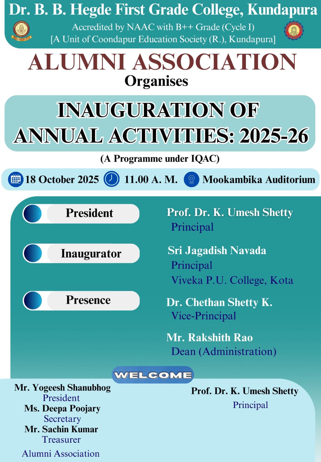 Inauguration of Annual Activities of Alumni Association:2025-26