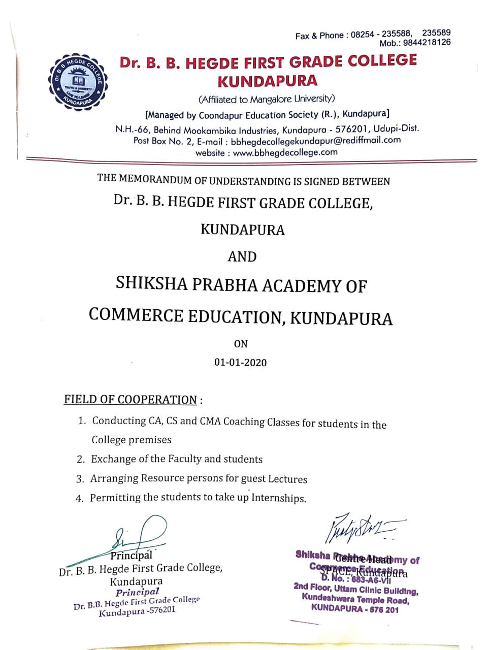 MoUs and Acadeamic Colloboration